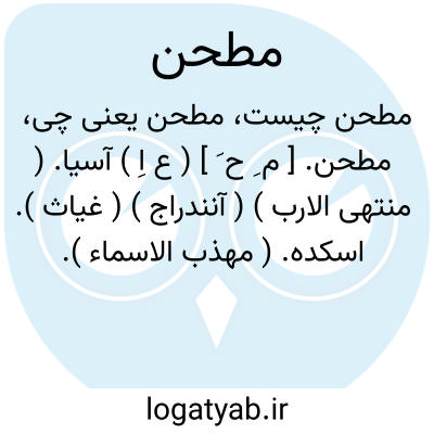 مطحن. [ م ِ ح َ ] ( ع اِ ) آسیا. ( منتهی الارب ) ( آنندراج ) ( غیاث ). اسکده. ( مهذب الاسماء ). آسیاکده. سرآسیا. ( یادداشت به خط مرحوم دهخدا ):