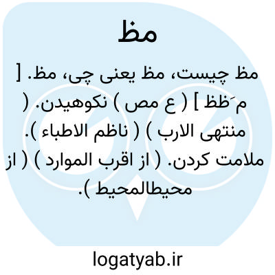 مظ. [ م َظظ ] ( ع مص ) نکوهیدن. ( منتهی الارب ) ( ناظم الاطباء ). ملامت کردن. ( از اقرب الموارد ) ( از محیطالمحیط ). || مظالعود؛ باز کردن پوست چوب. ( منتهی الارب ) ( ناظم الاطباء ). || ( اِ ) درخت انار یاانار دشتی و کوهی که اکثر در کوه سرات روید. بار ندارد و در شکوفه آن انگبین باشد که بمکند آن را. ( منتهی الارب ) ( آنندراج ) ( از اقرب الموارد ) ( از محیطالمحیط ). درخت انار و درخت انار دشتی. ( ناظم الاطباء ). انار دشتی. ( مهذب الاسماء ). گلنار. ( تحفه حکیم مؤمن ).انار کوهی. انار دشتی. گوز بیابانی. ( یادداشت به خطمرحوم دهخدا ). || دم الاخوین که خون غزال است. ( منتهی الارب ) ( آنندراج ) ( از اقرب الموارد ) ( از محیطالمحیط ). خون سیاوشان. ( ناظم الاطباء ). || عصاره بیخهای ارطی است. ( منتهی الارب ) ( آنندراج ) ( ناظم الاطباء ) ( از اقرب الموارد ) ( از محیطالمحیط ).