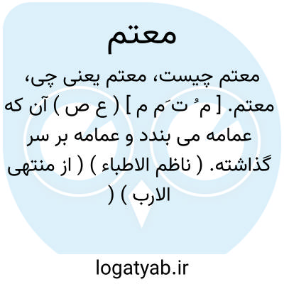 معتم. [ م ُ ت َم م ] ( ع ص ) آن که عمامه می بندد و عمامه بر سر گذاشته. ( ناظم الاطباء ) ( از منتهی الارب ) ( از اقرب الموارد ). صاحب عمامه. مُعَمَّم. ( یادداشت به خط مرحوم دهخدا ). و رجوع به اعتمام شود.