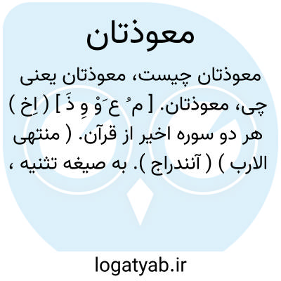 معوذتان. [ م ُ ع َوْ وِ ذَ ] ( اِخ ) هر دو سوره اخیر از قرآن. ( منتهی الارب ) ( آنندراج ). به صیغه تثنیه، دو سوره آخر از قرآن مجید یعنی قل اعوذ برب الفلق و قل اعوذ برب الناس. ( ناظم الاطباء ).سوره الفلق و آغاز آن قل اعوذ برب الفلق و سوره الناس و آغاز آن قل اعوذ برب الناس است. ( از اقرب الموارد ) ( از محیط المحیط ). و گویند این دو سوره را بدان جهت معوذتان نامیده اند که تعویذ کند صاحب خود را یعنی وی را از هر بدی نگاه دارد. ( از محیط المحیط ).
