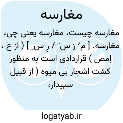 مغارسه. [ م ُ رَ س َ / رِ س ِ ] ( از ع، اِمص ) قراردادی است به منظور کشت اشجار بی میوه ( از قبیل سپیدار، بید، پده، سرو، چنار ) و یا نگهداری آنها که بین مالک زمین یا درختان با کارگر بسته می شود در مقابل حصه مشاع و اجرت دیگر ( از قبیل اینکه شاخه های زائد و تراش متعلق به کارگر باشد ). در پاره ای از ولایات آن را غارسی گویند. ( ترمینولوژی حقوق تألیف جعفری لنگرودی ).