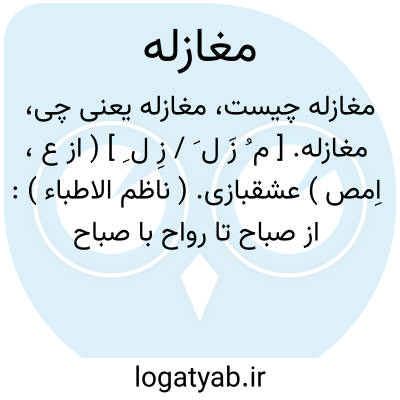 ۱ - ( مصدر ) عشقبازی کردن معاشقه کردن. ۲ - ( اسم ) عشقبازی: [ از صباح تا رواح با صباح بمغازله و معانقه میگذشت. ] ( لباب الالباب. نف. ۵۲ ) جمع: مغازلات.