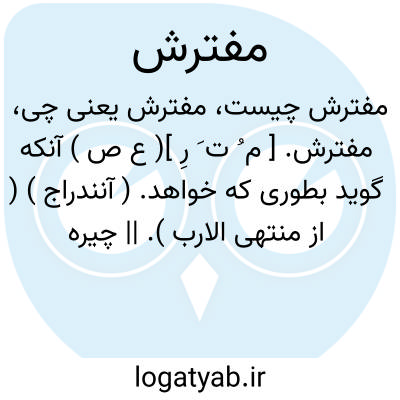 مفترش. [ م ُ ت َ رِ ]( ع ص ) آنکه گوید بطوری که خواهد. ( آنندراج ) ( از منتهی الارب ). || چیره شونده و بر زمین افکننده کسی را. ( آنندراج ) ( از منتهی الارب ) ( از اقرب الموارد ). || به ستم گیرنده چیزی را. غصب کننده. ( از آنندراج ) ( از منتهی الارب ) ( از اقرب الموارد ). || در پی رونده. ( ناظم الاطباء ) ( از منتهی الارب ) ( از اقرب الموارد ). || پایمال کننده. ( ناظم الاطباء ). زیرپای سپرنده. ( از منتهی الارب ) ( از اقرب الموارد ). || گسترده. پهن کرده. ( یادداشت به خط مرحوم دهخدا ) ( از منتهی الارب ). و رجوع به افتراش شود. || جمل مفترش الظهر؛ شتر بی کوهان. ( از اقرب الموارد ) ( یادداشت به خط مرحوم دهخدا ).