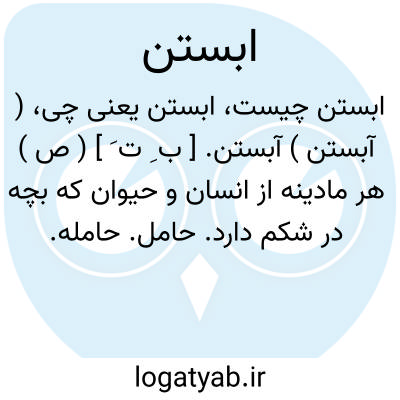 ( آبستن ) آبستن. [ ب ِ ت َ ] ( ص ) هر مادینه از انسان و حیوان که بچه در شکم دارد. حامل. حامله. آبست. بارور. باردار. حُبْلی ̍. ( دهار ). بارگرفته. حمل برداشته: