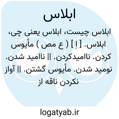 ابلاس. [ اِ ] ( ع مص ) مأیوس کردن. ناامیدکردن. || ناامید شدن. نومید شدن. مأیوس گشتن. || آواز نکردن ناقه از غایت خواهش گشن. || متحیر و اندوهگین و شکسته خاطر گردیدن. شکسته و اندوهگین شدن. غمگین شدن. || خاموش ماندن از اندوه. || بریده حجت شدن.
