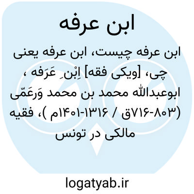 [ویکی فقه] اِبْن ِ عَرَفه، ابوعبدالله محمد بن محمد وَرعَمّی (۷۱۶-۸۰۳ق / ۱۳۱۶-۱۴۰۱م )، فقیه مالکی در تونس در عهد حَفْصیان. می باشد.