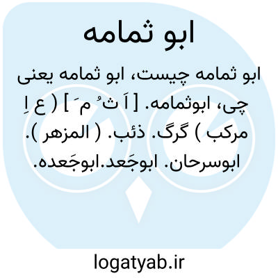 ابوثمامه. [ اَ ث ُ م َ ] ( ع اِ مرکب ) گرگ. ذئب. ( المزهر ). ابوسرحان. ابوجَعد.ابوجَعده. ابوجُعاده. اُوَیس. پِچکم. سرحان. سید.