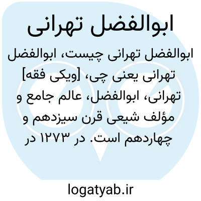 💡 میرزا ابوالفضل تهرانی (۱۲۷۳ تا۱۳۱۷قمری)، نویسنده و عالم قرن چهاردهم بود. او در تهران، نجف و سامرا درس خواند.