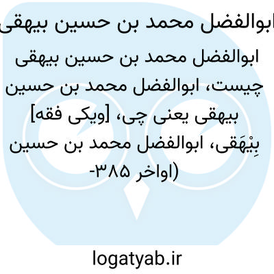[ویکی فقه] بِیْهَقی، ابوالفضل محمد بن حسین (اواخر ۳۸۵- صفر۴۷۰ق/۹۹۵- سپتامبر۱۰۷۷م)، دبیر و رئیس دیوان رسالتِ دستگاه غزنویان و مورخ معروف ایرانی بود.