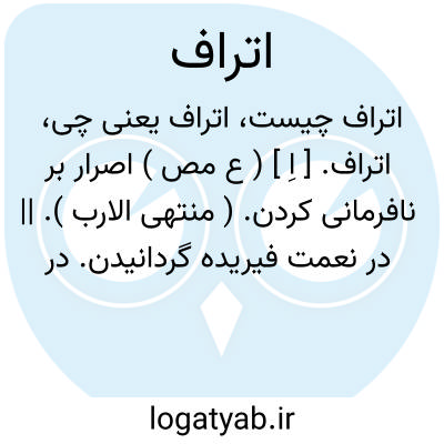اتراف. [ اِ ] ( ع مص ) اصرار بر نافرمانی کردن. ( منتهی الارب ). || در نعمت فیریده گردانیدن. در نعمت دَنَه گرفته گردانیدن. ( زوزنی ). نعمت دادن کسی را چندانکه بغلبه نشاط انجامد. دنه گرفتن در نعمت. گمراه کردن نعمت کسی را. بیراه کردن نعمت کسی را. هار کردن. نعمت بسیار دادن. در نعمت انبارده گردانیدن. || به نعمت پروردن. نعمت دادن.
