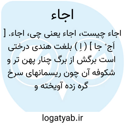 اجاء. [ اَج ْ جا ] ( اِ ) بلغت هندی درختی است برگش از برگ چنار پهن تر و شکوفه آن چون ریسمانهای سرخ گره زده آویخته و بارش شبیه به هلیله و چوبش در آتش نسوزد و چون دو درهم بیخ او را نیم کوب بجوشانند و با دو درهم نبات با شهد بنوشند جهت گشادن بول بسیار آزموده است.
