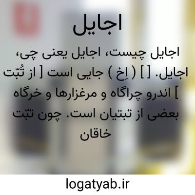 اجایل. [ ] ( اِخ ) جایی است [ از تُبّت ] اندرو چراگاه و مرغزارها و خرگاه بعضی از تبتیان است. چون تبّت خاقان بمیرد و از آن قبیله هیچکس نماند یکی را از این اجایل مهتر کنند. ( حدود العالم ).