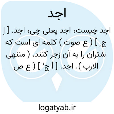 اجد. [ اِ ج ِ ] ( ع صوت ) کلمه ای است که شتران را به آن زجر کنند. ( منتهی الارب ).