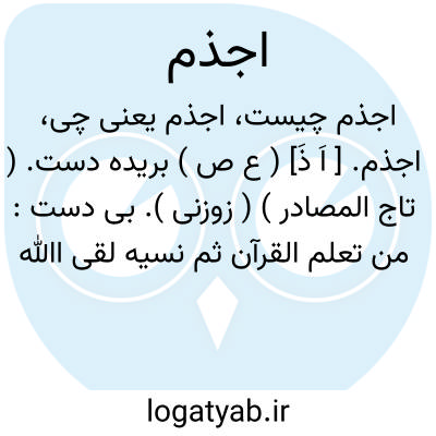 اجذم. [ اَ ذَ] ( ع ص ) بریده دست. ( تاج المصادر ) ( زوزنی ). بی دست: من تعلم القرآن ثم نسیه لقی اﷲ تعالی و هو اجذم ( حدیث ). || گرفتار بعلت جذام. || آنکه سرانگشتانش رفته باشد. || افتاده انگشت. ( مهذب الاسماء ). مؤنث: جَذْماء. ج، جُذم.