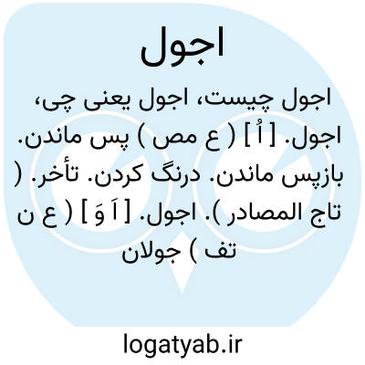 اجول. [ اُ ] ( ع مص ) پس ماندن. بازپس ماندن. درنگ کردن. تأخر. ( تاج المصادر ).