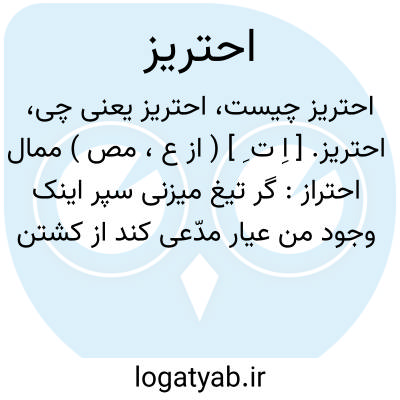 = احتراز: گر تیغ می زنی، سپر اینک وجود من / عیّار مدعی کند از دشمن احتریز (سعدی۲: ۴۶۱ ).