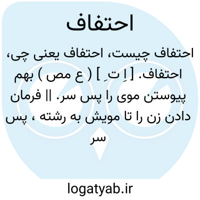 احتفاف. [ اِ ت ِ ] ( ع مص ) بهم پیوستن موی را پس سر. || فرمان دادن زن را تا مویش به رشته، پس سر بندد. ( منتهی الارب ). || موی از روی خود برکندن زن. ( زوزنی ). بند انداختن. حَف. برهنه و ساده کردن زن روی را از موی برای زینت. ( منتهی الارب ). || خوردن آنچه در دیگ باشد از طعام. || بریدن گیاه از زمین. || طواف کردن و گرداگرد برآمدن. ( منتهی الارب ). احاطه کردن. دوره کردن.