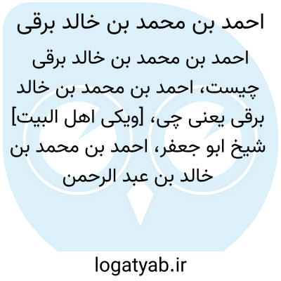 [ویکی اهل البیت] شیخ ابو جعفر، احمد بن محمد بن خالد بن عبد الرحمن بن محمد بن علی برقی، از راویان حدیث و از علمای بزرگ شیعه در قرن سوم و یکی از اصحاب امام جواد و امام هادی علیه السلام است. او در فنون مختلفی تبحر داشت و تالیفات زیادی داشته است. از او کتاب المحاسن بر جای مانده است.