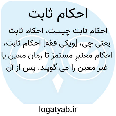 [ویکی فقه] احکام ثابت، احکام معتبرِ مستمرّ تا زمان معین یا غیر معیّن را می گویند. پس از آن که روشن شد احکام دگرگون شونده ای داریم و روشن شد، پژوهشیان، در گستره و تنگنای این دگرگون شونده ها با یکدیگر ناسازگاری دارند، نه در اصل آن.و پس از این که دلیلهای ثابت انگاران همه دستورها و فرمانهای دینی، نقل و نقد شد، جای این بحث است: آیا دگرگونی در احکام، معیار و تراز ویژه ای دارد، یا خیر هر کسی می تواند برابر ذوق و سلیقه و نگرش خود، هر حکمی از احکام را که با ذوق و سلیقه اش ناسازگار دید، در ردیفِ دگرگون شونده ها قرار دهد؟و نیز از این بحث و مقوله سخن به میان می آید: آیا دگرگون پذیری حکمی از احکام، به معنای دگرگونی کامل، صددرصد و گردش صد و هشتاد درجه ای از حکم اولی است، یا خیر اندازه و مرز دگرگونی نیز پیرو معیارها و ترازهاست؟