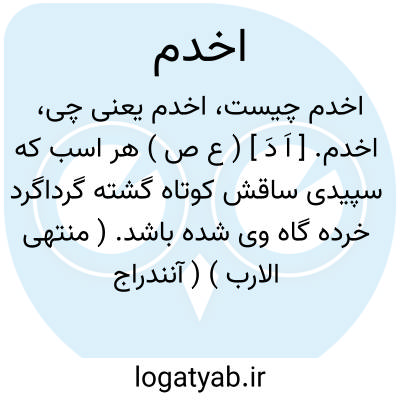 اخدم. [ اَ دَ ] ( ع ص ) هر اسب که سپیدی ساقش کوتاه گشته گرداگرد خرده گاه وی شده باشد. ( منتهی الارب ) ( آنندراج ). اسبی که پای وی بجای خلخال سپید بود.