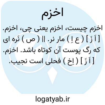 اخزم. [ اَ زَ ] ( ع اِ ) مار نر. || ( ص ) نَره ای که رگ پوست آن کوتاه باشد.