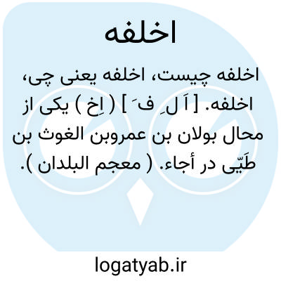 اخلفه. [ اَ ل ِ ف َ ] ( اِخ ) یکی از محال بولان بن عمروبن الغوث بن طَیّی در أجاء. ( معجم البلدان ).