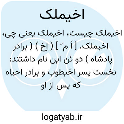 اخیملک. [ اَ م َ ] ( اِخ ) ( برادر پادشاه ) دو تن این نام داشتند: نخست پسر اخیطوب و برادر احیاه که پس از او کاهن بزرگ شد. دوم ظاهراً همان ابی یاثار باشد. ( قاموس کتاب مقدس ).