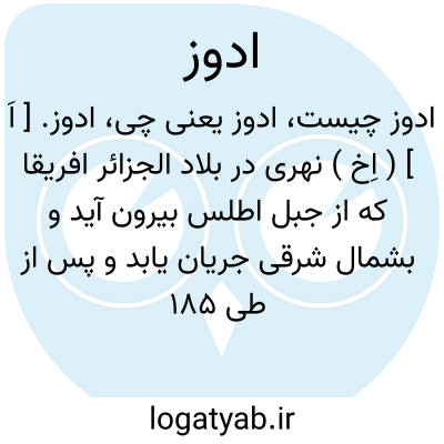 ادوز. [ اَ ] ( اِخ ) نهری در بلاد الجزائر افریقا که از جبل اطلس بیرون آید و بشمال شرقی جریان یابد و پس از طی 185 هزار گز ببحر متوسط نزدیک بجایه ریزد. ( ضمیمه معجم البلدان ).