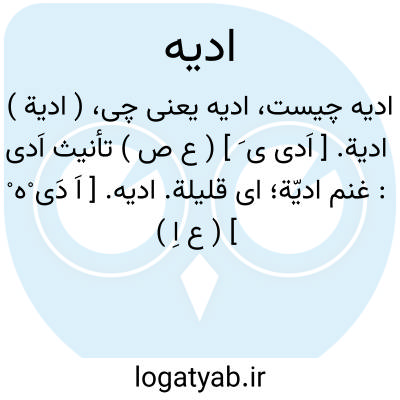 ( ادیة ) ادیة. [ اَدی ی َ ] ( ع ص ) تأنیث اَدی: غنم ادیّة؛ ای قلیلة.