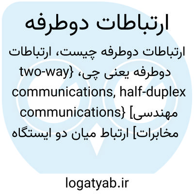 {two-way communications, half-duplex communications} [مهندسی مخابرات] ارتباط میان دو ایستگاه به نحوی که هر دو قادر به دریافت و ارسال پیام باشند