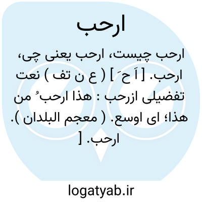 ارحب. [ اَ ح َ ] ( ع ن تف ) نعت تفضیلی ازرحب: هذا ارحب ُ من هذا؛ ای اوسع. ( معجم البلدان ).