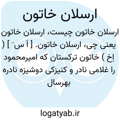 ارسلان خاتون. [ اَ س َ ] ( اِخ ) خاتون ترکستان که امیرمحمود را غلامی نادر و کنیزکی دوشیزه نادره بهرسال فرستادی. ( تاریخ بیهقی چ ادیب ص 253 ). و این نام در تاریخ بیهقی چ فیاض ص 252 خاتون ارسلان آمده است. ارسلان خاتون. [ اَ س َ ] ( اِخ ) بنت جغری بیگ. عمه سلطان ملکشاه بن الب ارسلان بن جغری بیگ. او در اول در حباله القائم بامراﷲ خلیفه عباسی بود و به سال 469 هَ. ق. امیرعلی علاءالدولةبن ظهیرالدین بن ابی منصور فرامرزبن علاءالدوله کاکویه او را بزنی کرد.