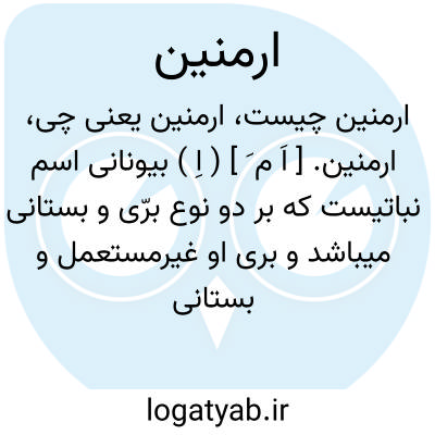 ارمنین. [ اَ م َ ] ( اِ ) بیونانی اسم نباتیست که بر دو نوع برّی و بستانی میباشد و بری او غیرمستعمل و بستانی او برگش شبیه ببرگ ابهل و ساقش مربع و بقدر نصف ذراع و غلاف ثمرش شبیه بغلاف لوبیا و مایل بطرف اسفل و تخمش سیاه و دراز و تخم برّی او مستدیر و اغبر، و گویند ارمنین درخت قلقلان است. در سیم گرم و محلل و جذّاب و یک درهم او با شراب بغایت محرک باه و ضماد مطبوخ او محلل اورام بلغمی و جاذب پیکان و خار از بدن و مخرج جنین و قطور او با عسل جهت قرحه چشم نافع است. ( تحفه حکیم مؤمن ). بلغت رومی انار صحرائی را گویند و بعربی رمان البرّی خوانند و بعضی درخت انار صحرائی را گفته اند و بعضی گویند اناردانه دشتی است که آنرا حب القلقل خوانند، قاف اول مکسور و ثانی مفتوح. ( برهان ). انار برّی. ( سروری ) ( جهانگیری ). انار دشتی.( رشیدی ). قلقل. ( اختیارات بدیعی ). انار کوهی. ( شعوری ). قلقلان. قُلاقِل. حب القلقل. اناردانه دشتی. جودان. جودانه. گلنار پارسی.