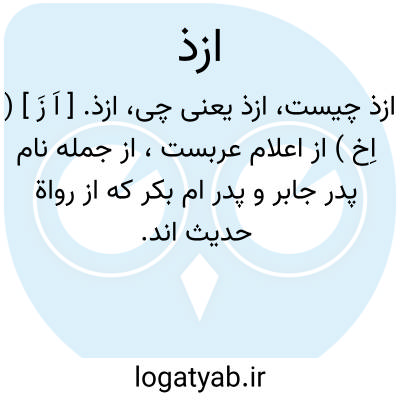ازذ. [ اَ زَ ] ( اِخ ) از اعلام عربست، از جمله نام پدر جابر و پدر ام بکر که از رواة حدیث اند.