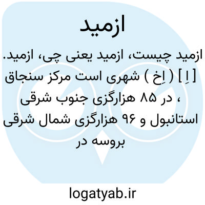 ازمید. [ اِ ] ( اِخ ) شهری است مرکز سنجاق، در 85 هزارگزی جنوب شرقی استانبول و 96 هزارگزی شمال شرقی بروسه در انتهای خلیج تنگ و طویلی که از بحر مرمره به اندرون اناطولی ممتد است. شهر مزبور در دامنه غربی تپه ای جای دارد و تا ساحل دریا امتداد یابد منظره وی بسیار زیباست و خانه ها و منازل چوبی و در میان باغچه ها بنا شده و در بالای تپه ویرانه های قلعه قدیم مشاهده میشود. مردم آن مسلمان و نصاری و کلیمی هستند و قریب 15000 تن سکنه دارد که قسم اعظم آن مسلمانانند و اکثر نصارای شهر، ارامنه اند. این شهر لنگرگاه اناطولی است بهمین لحاظ تجارت آن رونق دارد و بوسیله خطوط راه آهن با استانبول ارتباط دارد چند دستگاه کشتی سازی در این شهر وجود دارد که اکثر کشتیهای کوچک که در دریای مرمره حرکت میکنند در همین جا ساخته میشود. جوامع و مساجد متعدد و دو کلیسیا و یک دیر موسوم به پانته لمون و یک سربازخانه زیبا و چند مدرسه ابتدائی و تالی ( رشدیه ) موجود است. باغ و باغچه و بوستانهای فراوان در حوالی این شهر وجود دارد. ( از قاموس الاعلام ترکی ). و رجوع بضمیمه معجم البلدان شود.