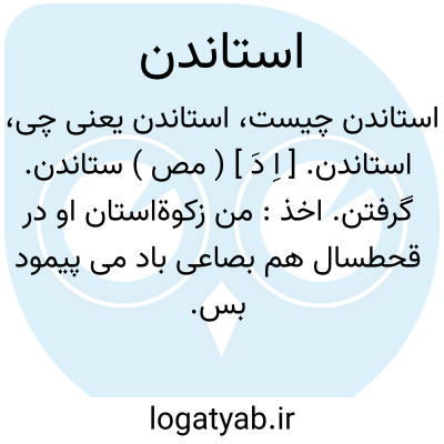 ستاندن: گرفتن، چیزی ازکسی گرفتن، بازگرفتن چیزی ازکسی، ستانیدن وستدن واستدن وبستدن نیزگفته اند