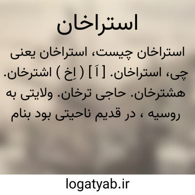 استراخان. [ اَ ] ( اِخ ) اشترخان. هشترخان. حاجی ترخان. ولایتی به روسیه، در قدیم ناحیتی بود بنام خانه استراخان، و آن بر ساحل بحر خزر، که از 40 درجه و 40 دقیقه تا 49 درجه و 42 دقیقه طول شرقی و از 45 درجه تا 52 درجه عرض شمالی ممتد است. حدّ شمالی آن ولایت ارنبرگ و حدّ شرقی نهر اورال است که آن را از آسیاجدا میسازد و حدّ جنوبی ولایت قفقاز، و حدّ جنوب شرقی بحر خزر و حدّ غربی ولایت قزاق ( قزاقستان ) است بر کنار نهر دُن و حد شمال غربی ولایت سراتوف. مساحت آن 47884 هزار گز مربع و سکنه آن 225000 تن است، مرکب از ارمنی و تاتار و قزاق و گرجی. || و نیز نام قصبه ولایت مذکور است. ( ضمیمه معجم البلدان ).