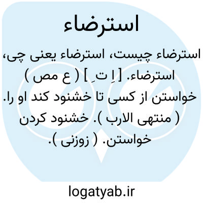 استرضاء. [ اِ ت ِ ] ( ع مص ) خواستن از کسی تا خشنود کند او را. ( منتهی الارب ). خشنود کردن خواستن. ( زوزنی ). || طلب خوشنودی کردن. خواستن خشنودی کسی را. ( منتهی الارب ). خوشنودی خواستن. ( وطواط ) ( غیاث ). رضامندی خواستن. ( غیاث ). || خوشنود کردن. ( تاج المصادر بیهقی ). || خوشنود شدن. خوشنودی.