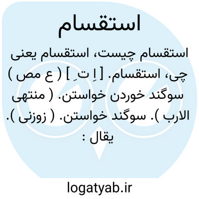 استقسام. [ اِ ت ِ ] ( ع مص ) سوگند خوردن خواستن. ( منتهی الارب ). سوگند خواستن. ( زوزنی ). یقال: استقسمه و به. ( منتهی الارب ). || بخش کردن خواستن. ( زوزنی ). بخش کردن خواستن از تیرهای قمار. ( منتهی الارب ). قسمت کردن خواستن از تیرها. ( تاج المصادر بیهقی ). || بهره و نصیب خود خواستن. ( منتهی الارب ). || تفأل و تطیر به تیرهای بی پر در جاهلیت.