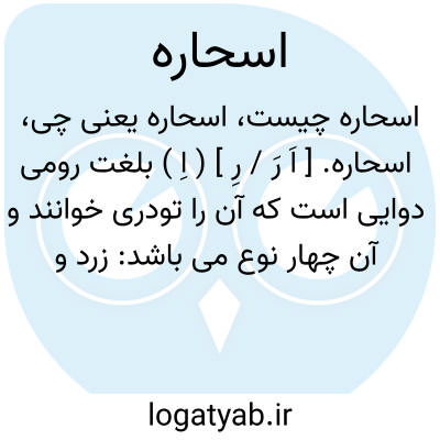 اسحاره. [ اَ رَ / رِ ] ( اِ ) بلغت رومی دوایی است که آن را تودری خوانند و آن چهار نوع می باشد: زرد و سفید و سرخ و گلگون، و بهترین آن زرد باشد، سرطان را نافع است. ( برهان ). اسحار. اشجاره. و رجوع به اسحار شود.