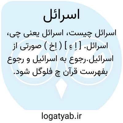 اسرائل. [ اِ ءِ ] ( اِخ ) صورتی از اسرائیل.رجوع به اسرائیل و رجوع بفهرست قرآن چ فلوگل شود.