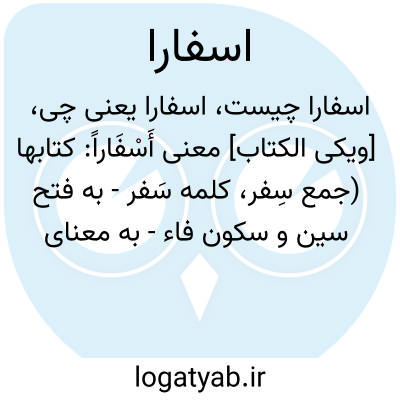 [ویکی الکتاب] معنی أَسْفَاراً: کتابها (جمع سِفر، کلمه سَفر - به فتح سین و سکون فاء - به معنای پردهبرداری است که البته در خصوص اعیان استعمال میشود، مانند سفر عمامه یعنی برداشتن عمامه از سر، و سفر خمار یعنی برداشتن نقاب از صورت و سِفر - به کسر سین و سکون فاء - به معنای کتابی است ک...