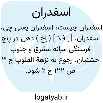 اسفدران. [ اِ ف َ ] ( اِخ ) دهی در پنج فرسنگی میانه مشرق و جنوب جشنیان. رجوع به نزهة القلوب ج 3 ص 122 ح 2 شود.