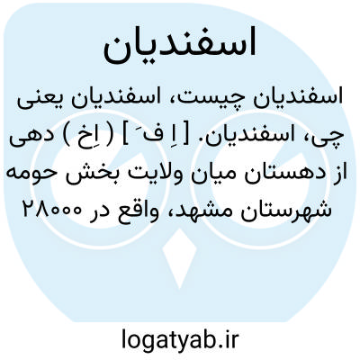 اسفندیان. [ اِ ف َ ] ( اِخ ) دهی از دهستان میان ولایت بخش حومه شهرستان مشهد، واقع در 28000 گزی شمال باختری مشهد و 2000 گزی شمال کشف رود. جلگه معتدل. سکنه 95 تن. آب آن از رودخانه. محصول آن غلات. شغل اهالی زراعت و مالداری، صنایع دستی آن قالیچه بافی. راه آن مالرو است. ( فرهنگ جغرافیائی ایران ج 9 ).