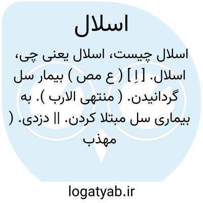 اسلال. [ اِ ] ( ع مص ) بیمار سل گردانیدن. ( منتهی الارب ). به بیماری سل مبتلا کردن. || دزدی. ( مهذب الاسماء ) ( منتهی الارب ). دزدیدن. ( تاج المصادر بیهقی ). || سرقت خفیة. || خیانت. ( منتهی الارب ). || رشوت دادن. ( تاج المصادر بیهقی ). رشوة. ( مهذب الاسماء ). پاره دادن. || غارت آشکار.