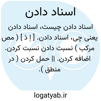 اسناد دادن. [ اِ دَ ] ( مص مرکب ) نسبت دادن نسبت کردن. اضافه کردن. || حمل کردن ( در منطق ).