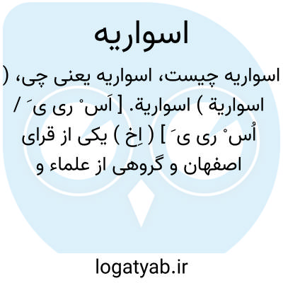 ( اسواریة ) اسواریة. [ اَس ْ ری ی َ / اُس ْ ری ی َ ] ( اِخ ) یکی از قرای اصفهان و گروهی از علماء و محدثین بدان نسبت دارند. ( معجم البلدان ) ( مرآت البلدان ). رجوع به اسوار شود.