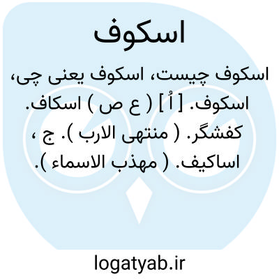 اسکوف. [ اُ ] ( ع ص ) اسکاف. کفشگر. ( منتهی الارب ). ج، اساکیف. ( مهذب الاسماء ).