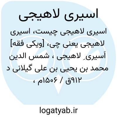 [ویکی فقه] اَسیری ِ لاهیجی، شمس الدین محمد بن یحیی بن علی گیلانی د ۹۱۲ق / ۱۵۰۶م، عارف، شاعر و از مشایخ سلسله نوربخشیه که «اسیری » تخلص می کرد و بدان شهرت یافت.