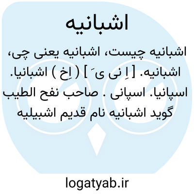 اشبانیه. [ اِ نی ی َ ] ( اِخ ) اشبانیا. اسپانیا. اسپانی. صاحب نفح الطیب گوید اشبانیه نام قدیم اشبیلیه بوده سپس آنرا به تمام اندلس اطلاق کرده اند.